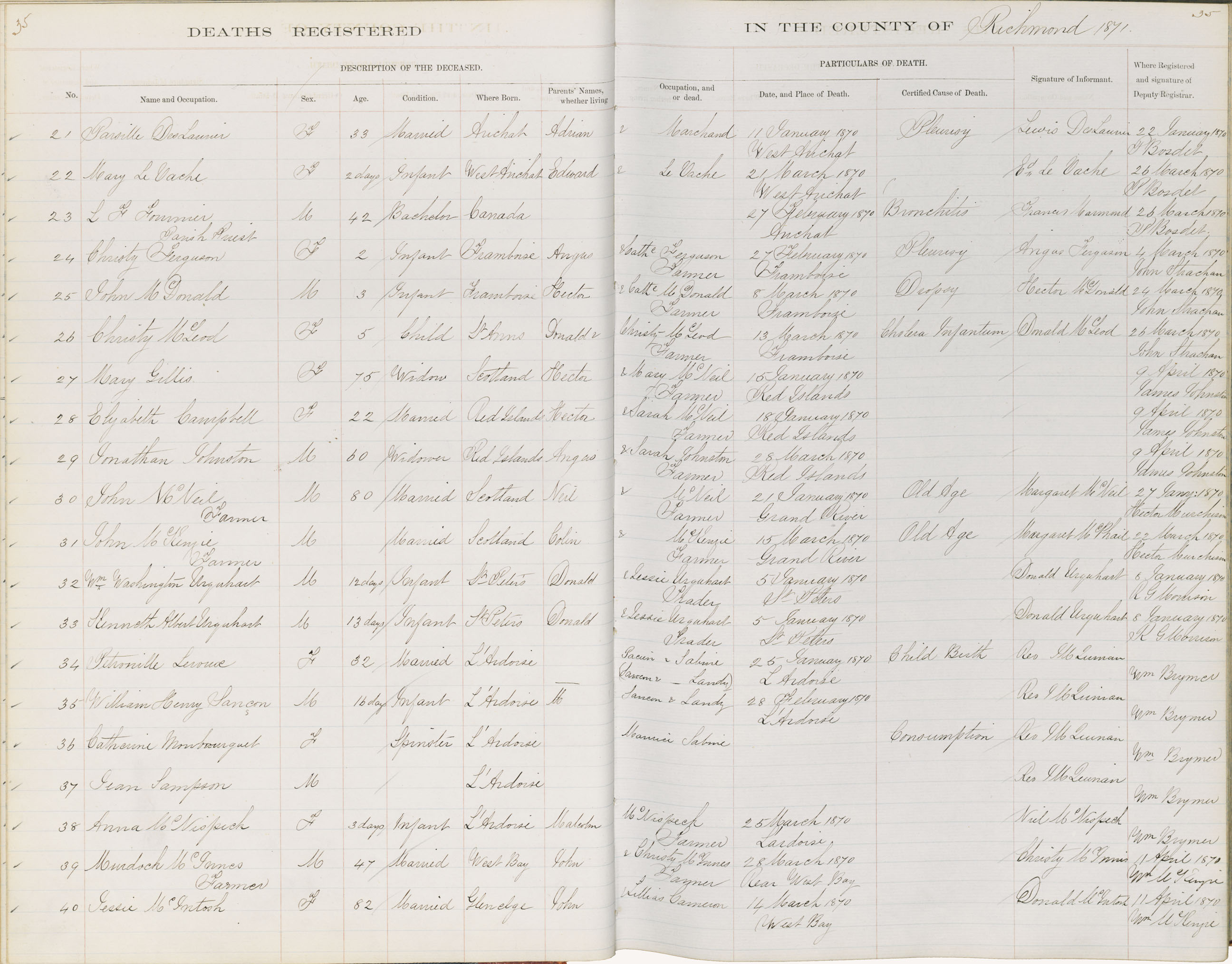 Death Registration: Year: 1870 book: 1815 page: 35 number: 24