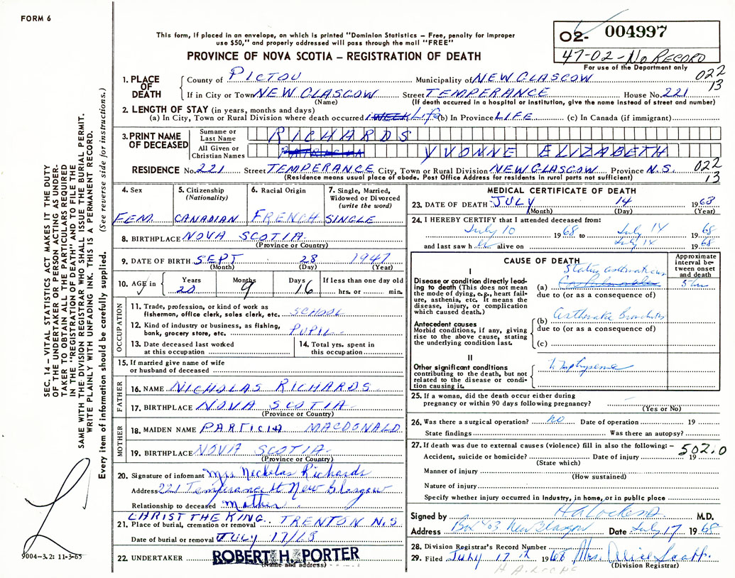 Death Registration: Year: 1968 number: 4997