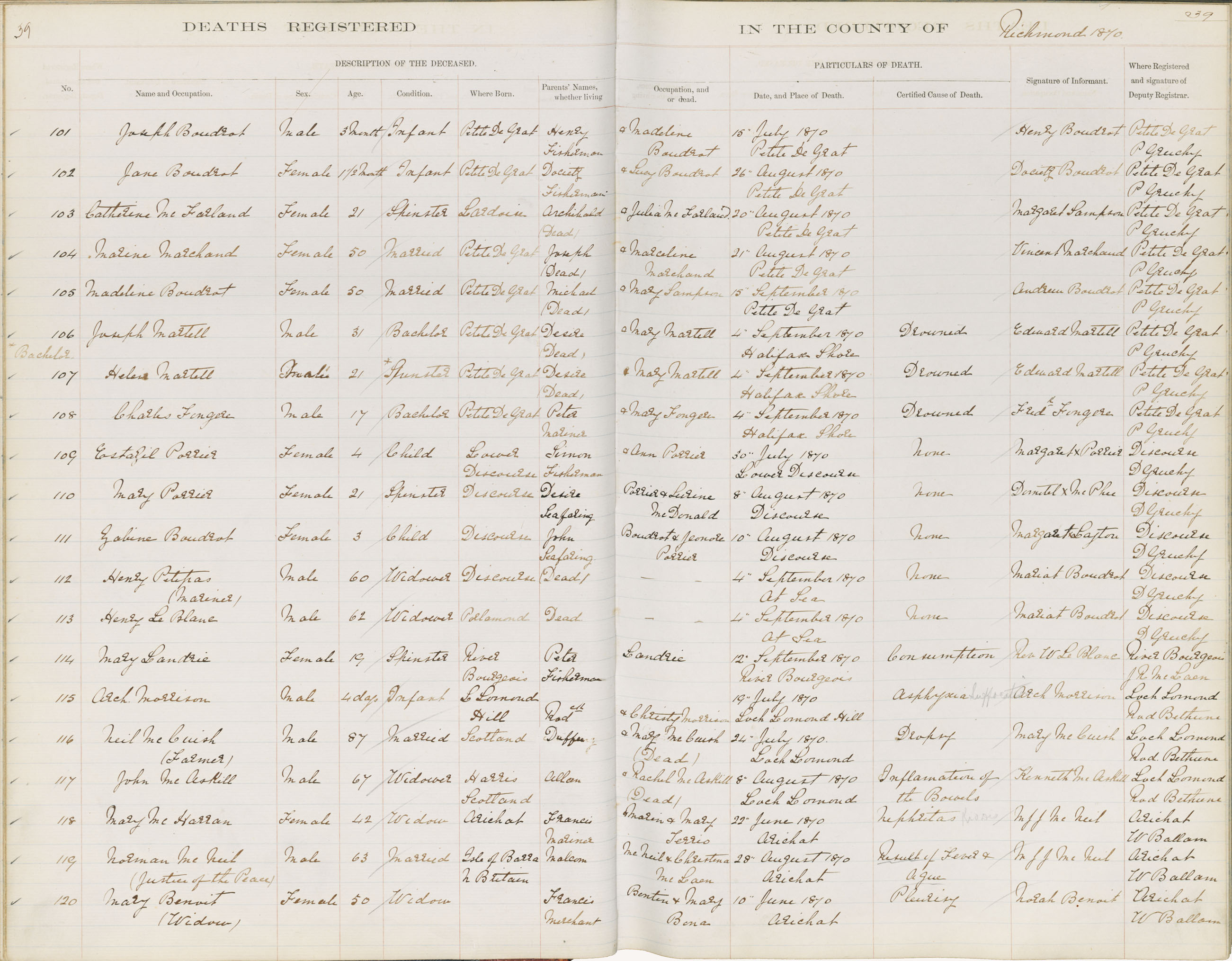 Death Registration: Year: 1870 book: 1815 page: 39 number: 101