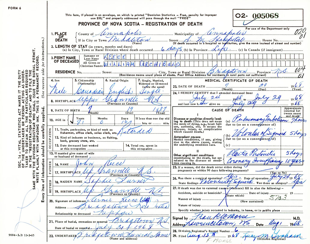 Death Registration: Year: 1968 number: 5068