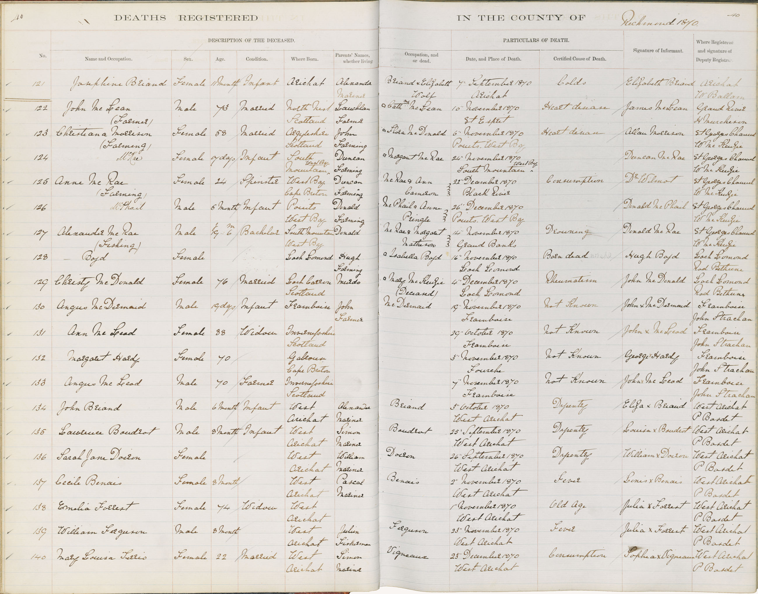 Death Registration: Year: 1870 book: 1815 page: 40 number: 121