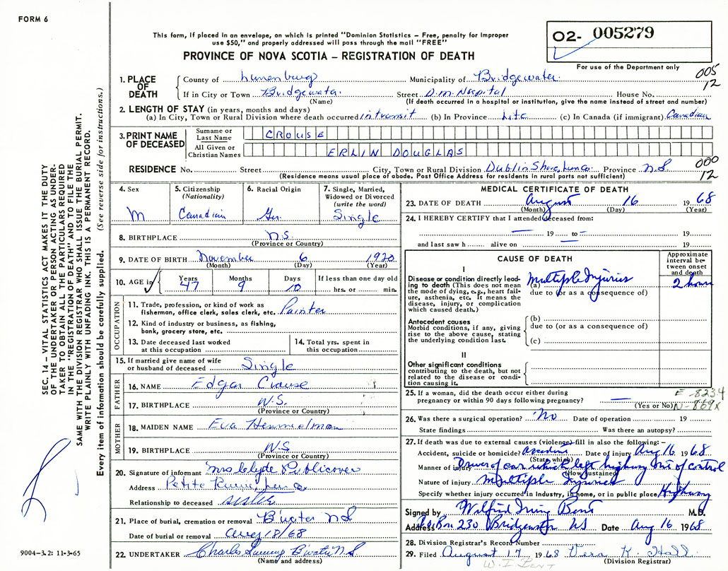 Death Registration: Year: 1968 number: 5279