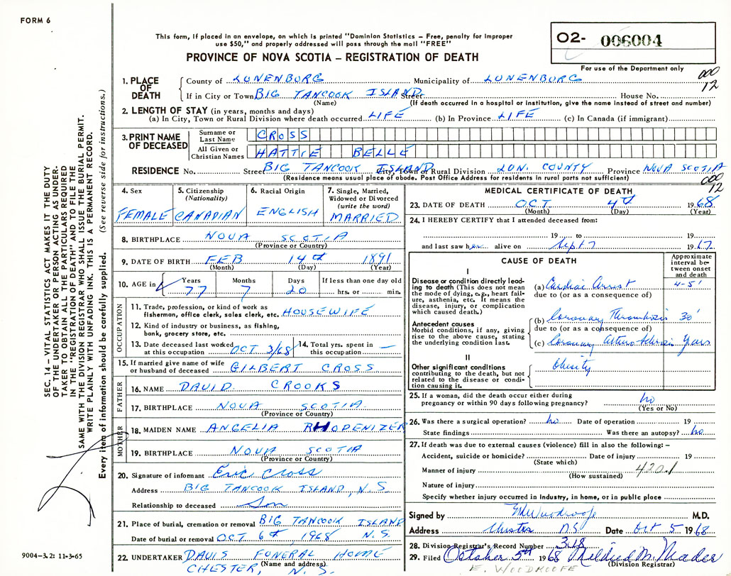 Death Registration: Year: 1968 number: 6004