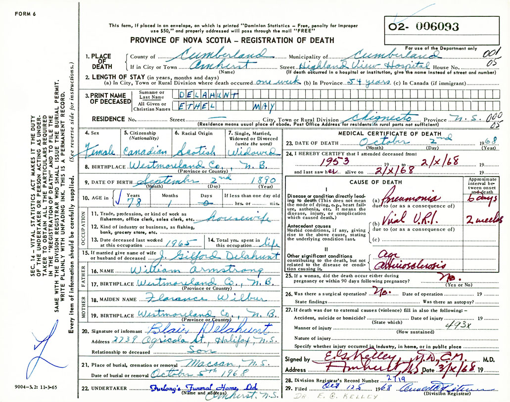 Death Registration: Year: 1968 number: 6093