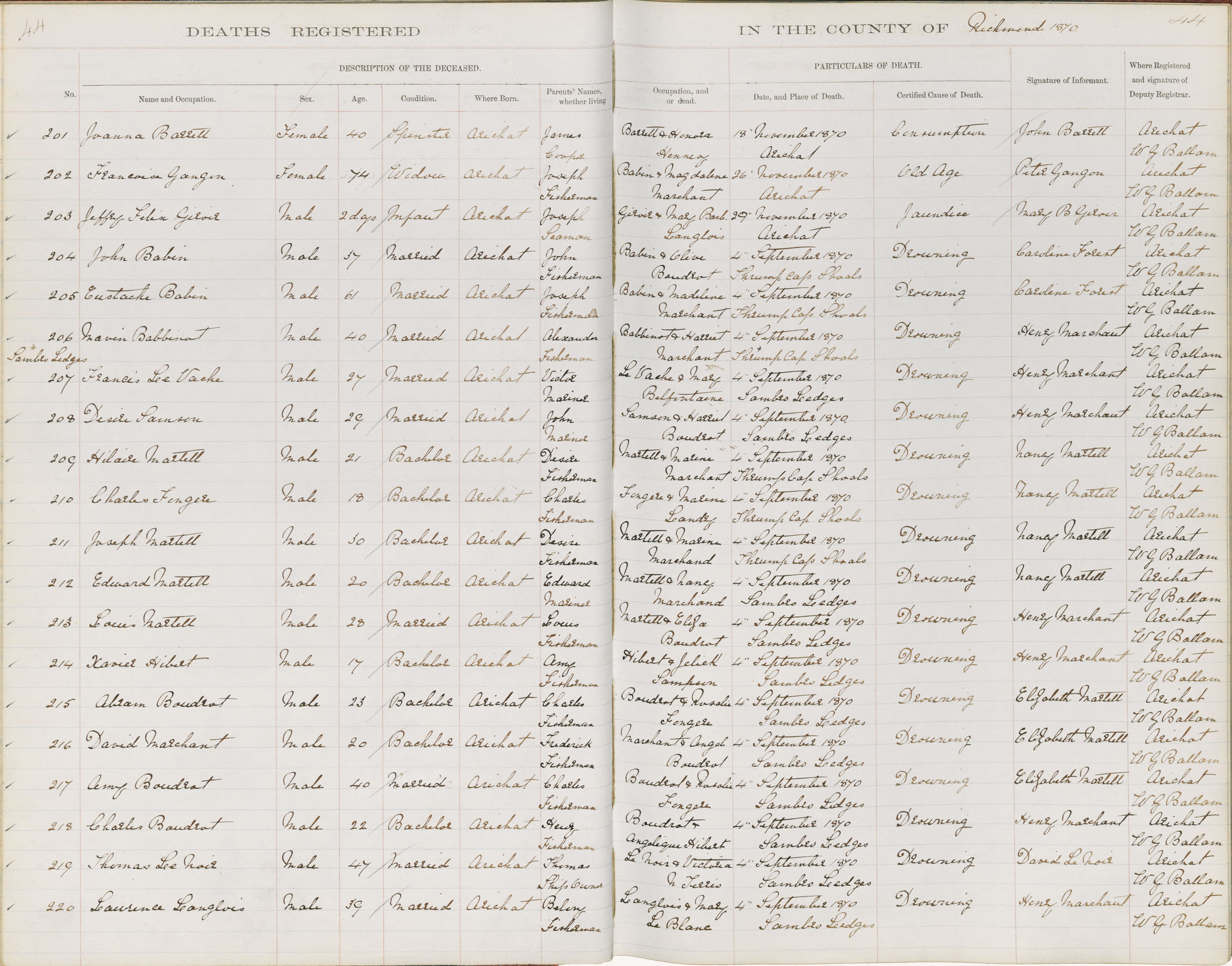 Death Registration: Year: 1870 book: 1815 page: 44 number: 220