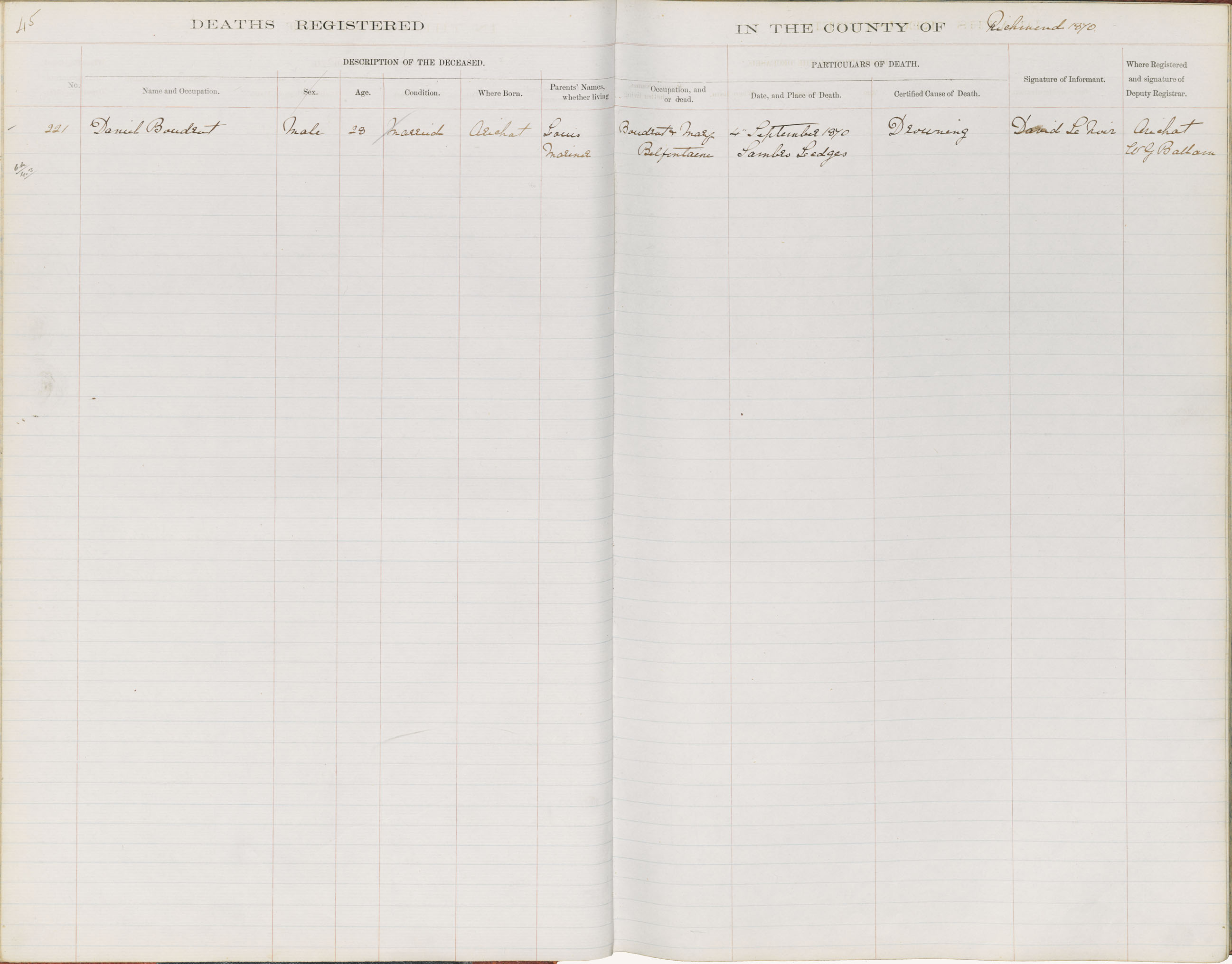 Death Registration: Year: 1870 book: 1815 page: 45 number: 221