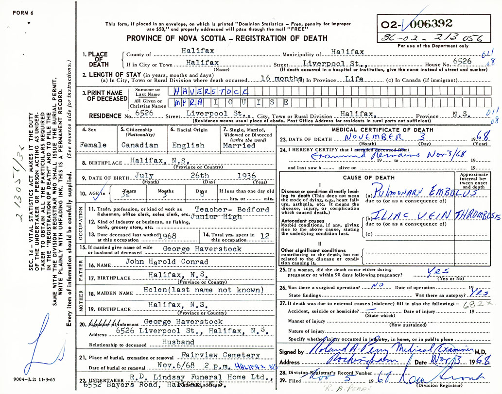Death Registration: Year: 1968 number: 6392
