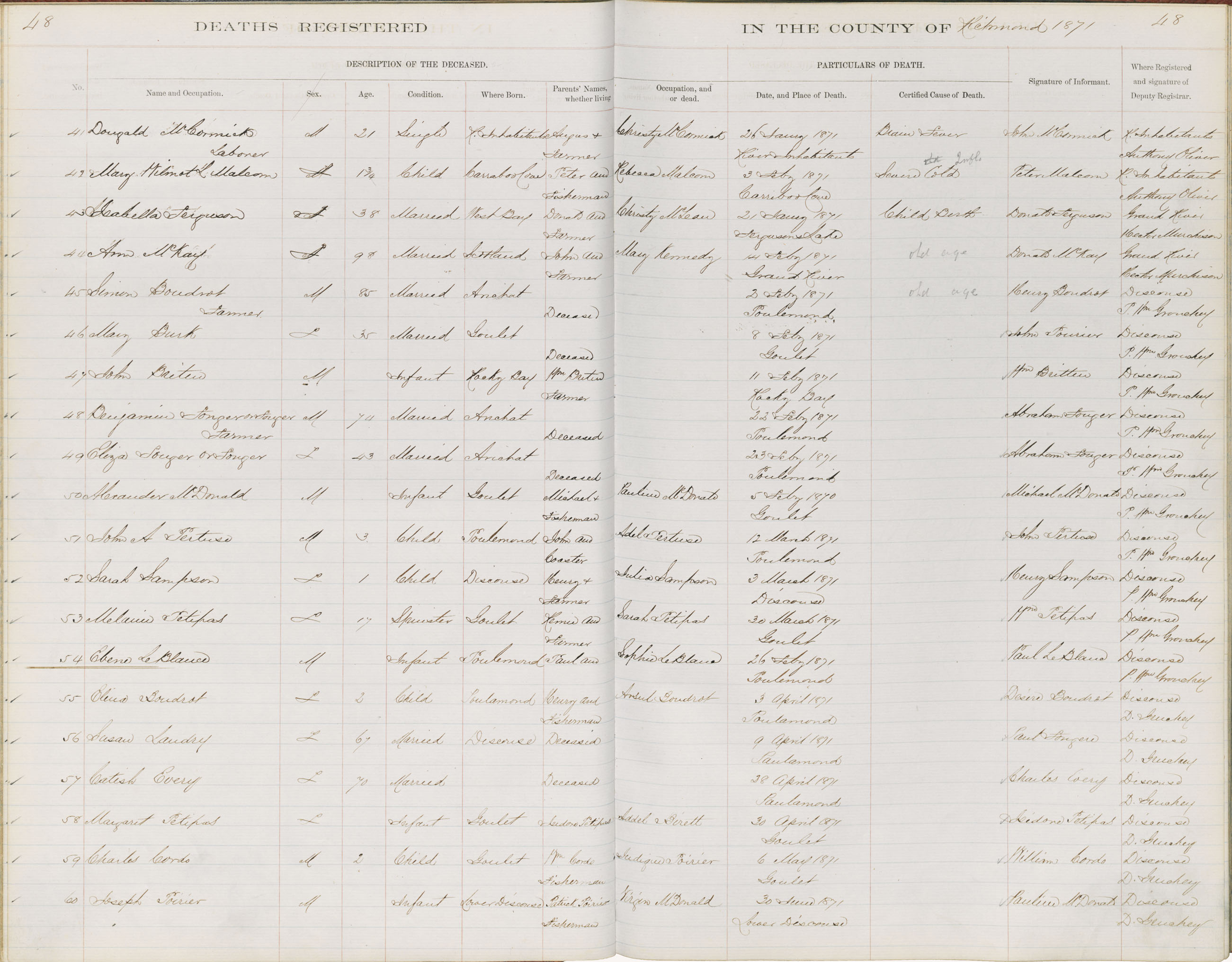 Death Registration: Year: 1871 book: 1815 page: 48 number: 41