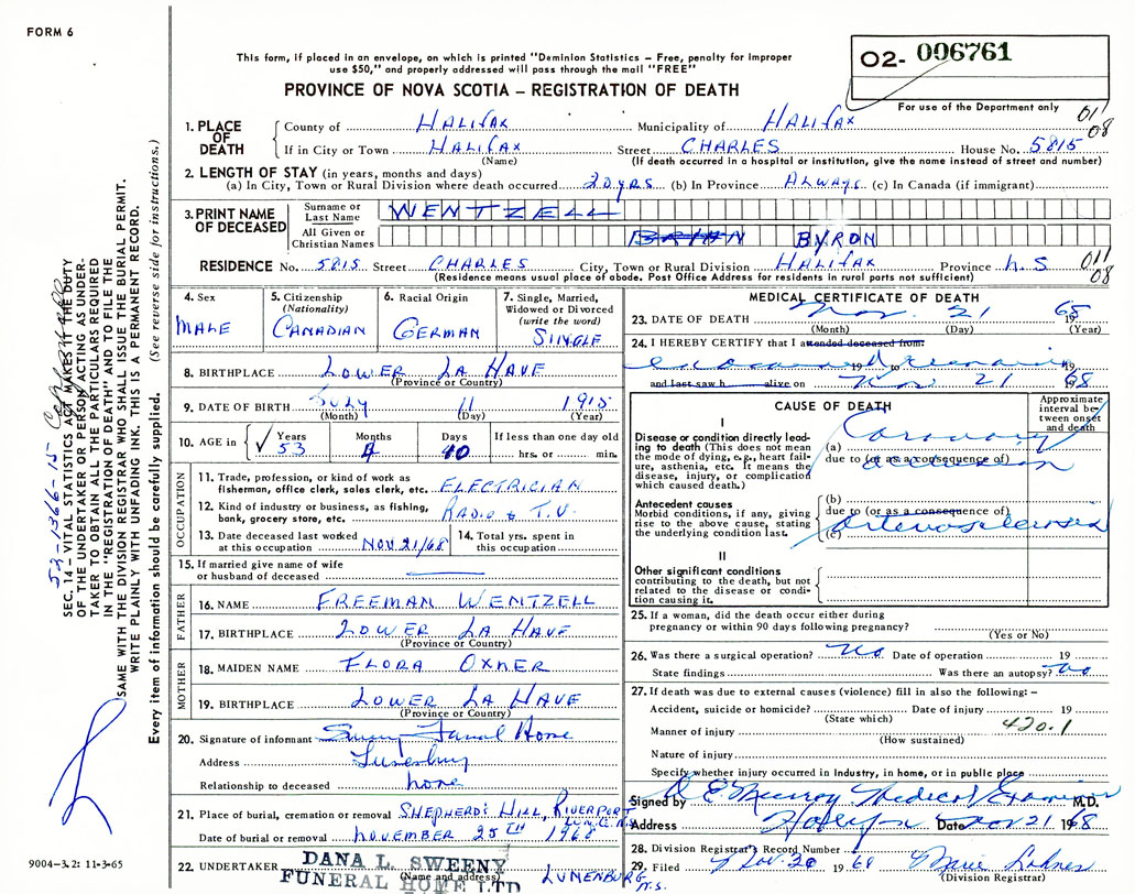 Death Registration: Year: 1968 number: 6761