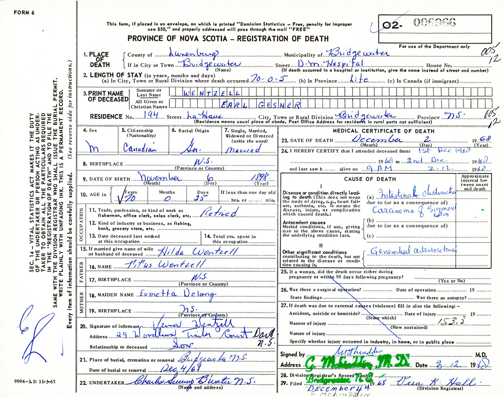 Death Registration: Year: 1968 number: 6966