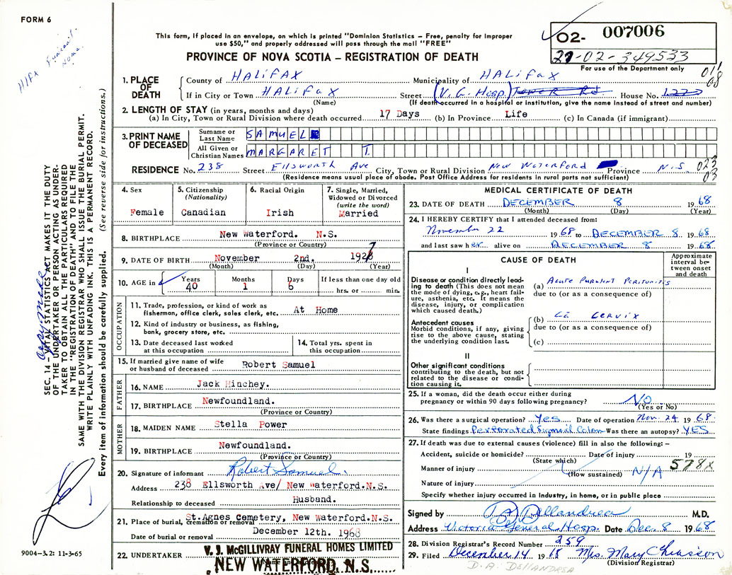 Death Registration: Year: 1968 number: 7006