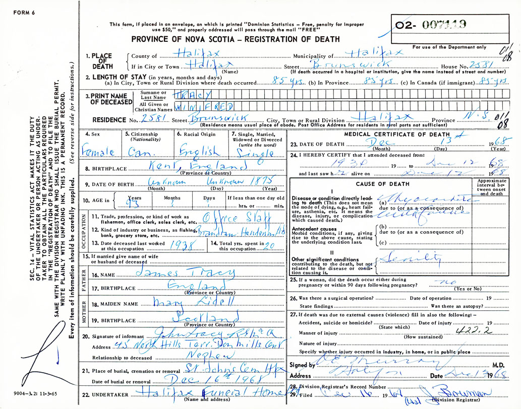 Death Registration: Year: 1968 number: 7119