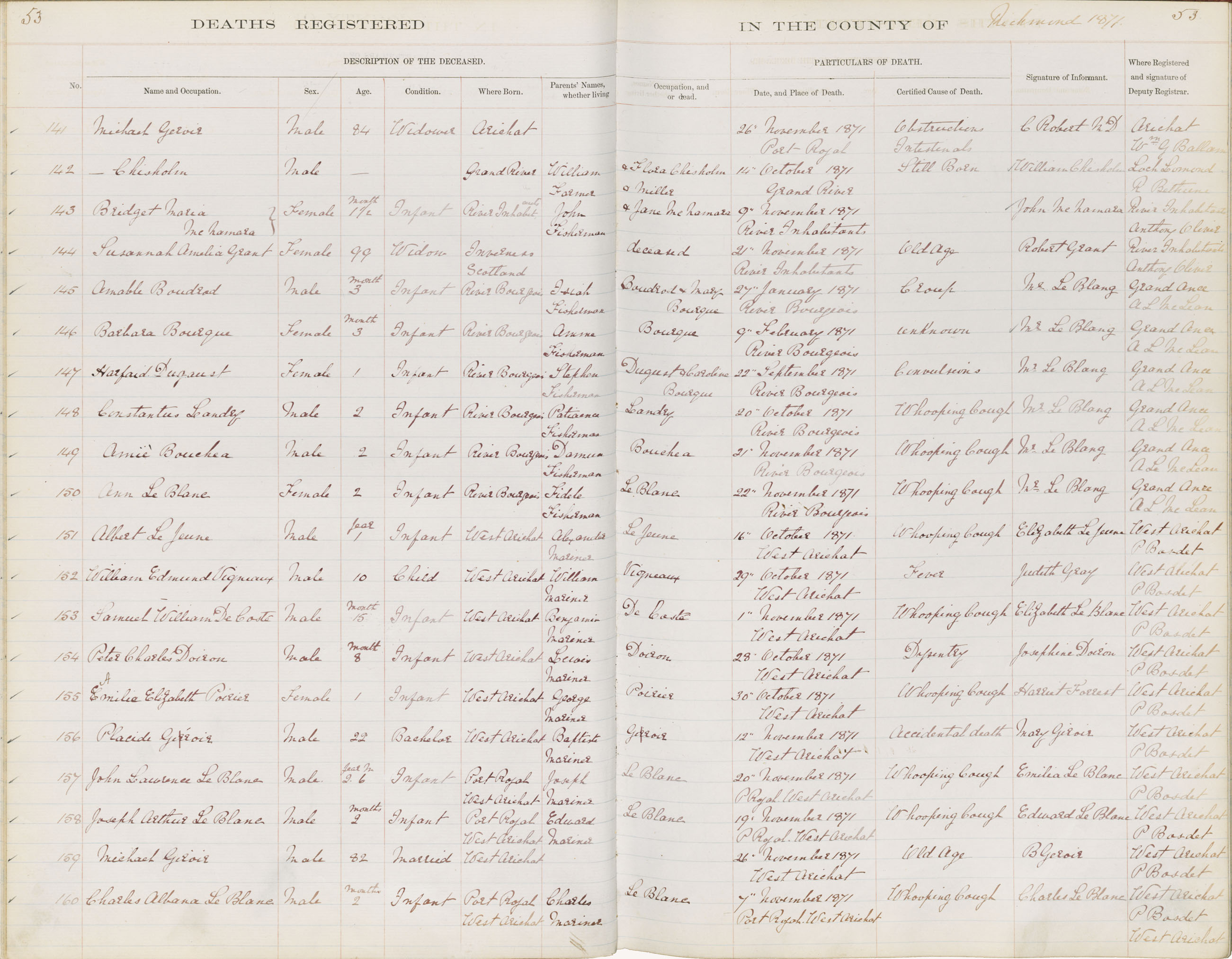 Death Registration: Year: 1871 book: 1815 page: 53 number: 141