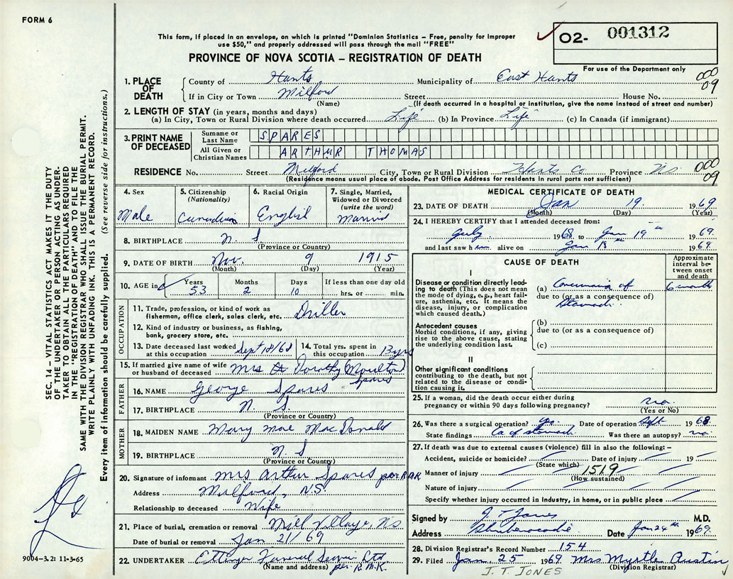 Death Registration: Year: 1969 number: 1312