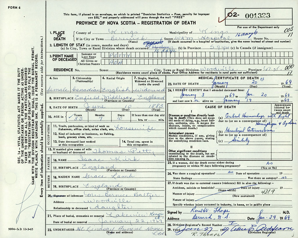 Death Registration: Year: 1969 number: 1323