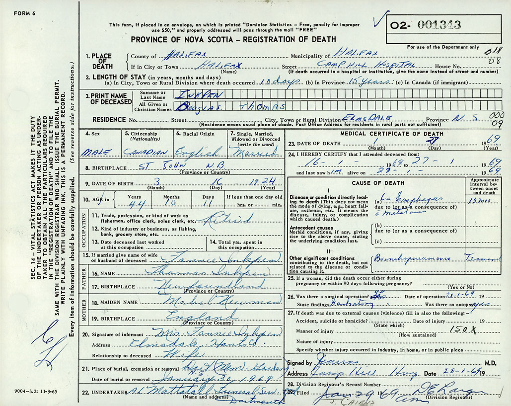 Death Registration: Year: 1969 number: 1343