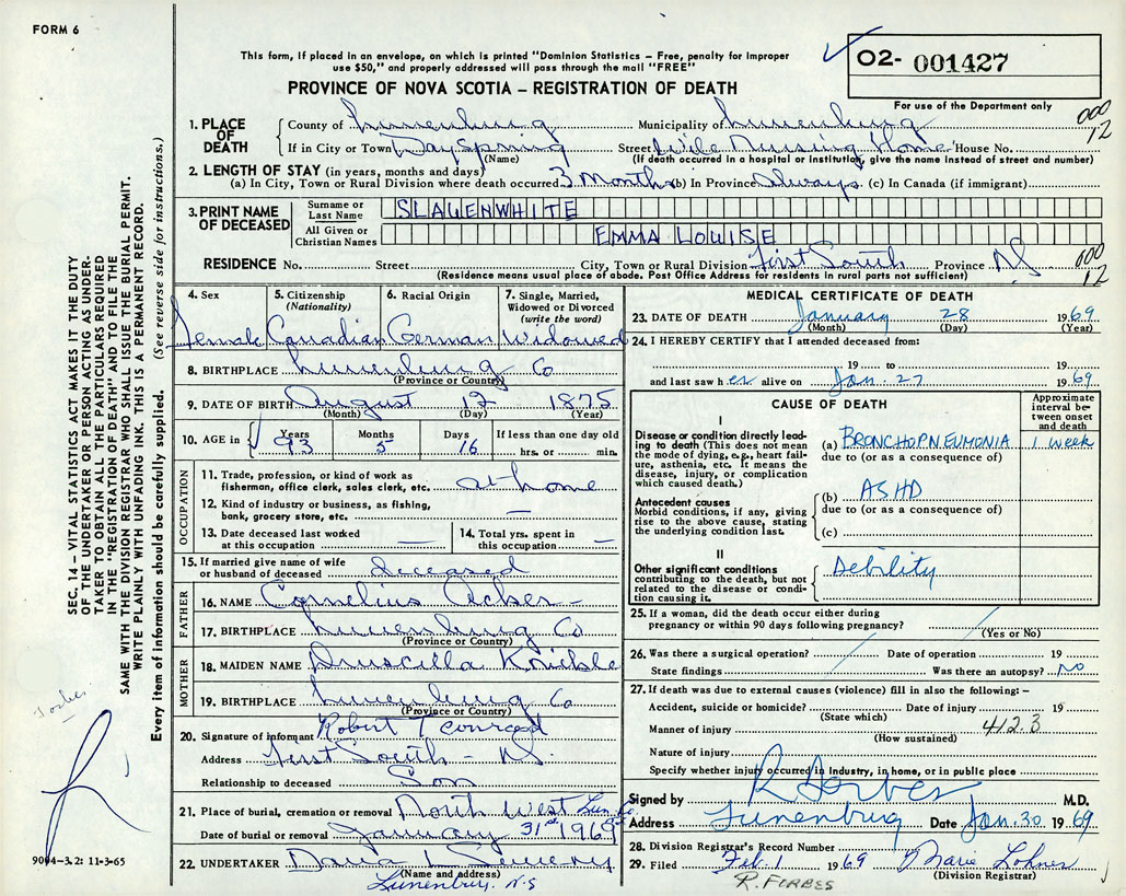 Death Registration: Year: 1969 number: 1427