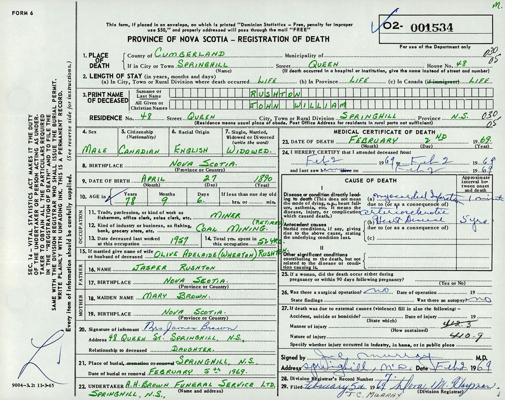 Death Registration: Year: 1969 number: 1534