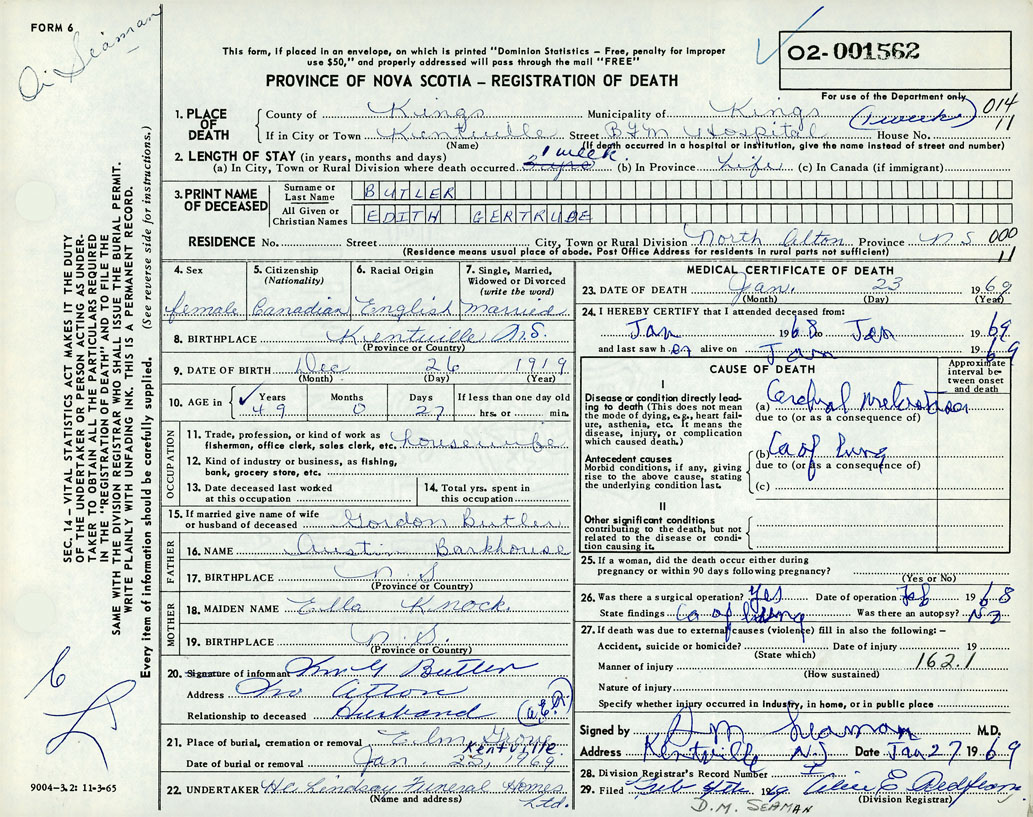 Death Registration: Year: 1969 number: 1562