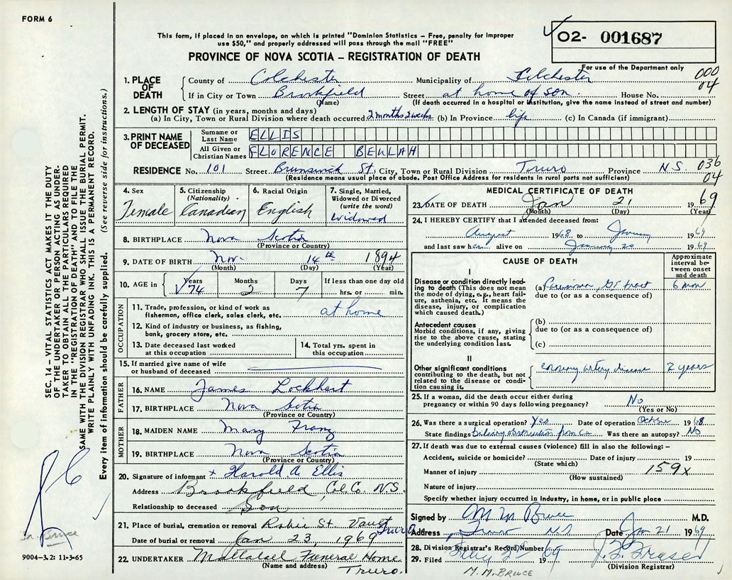Death Registration: Year: 1969 number: 1687