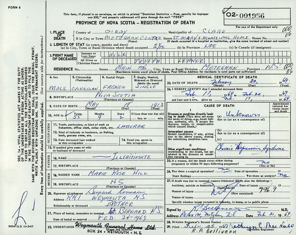 Death Registration: Year: 1969 number: 1956