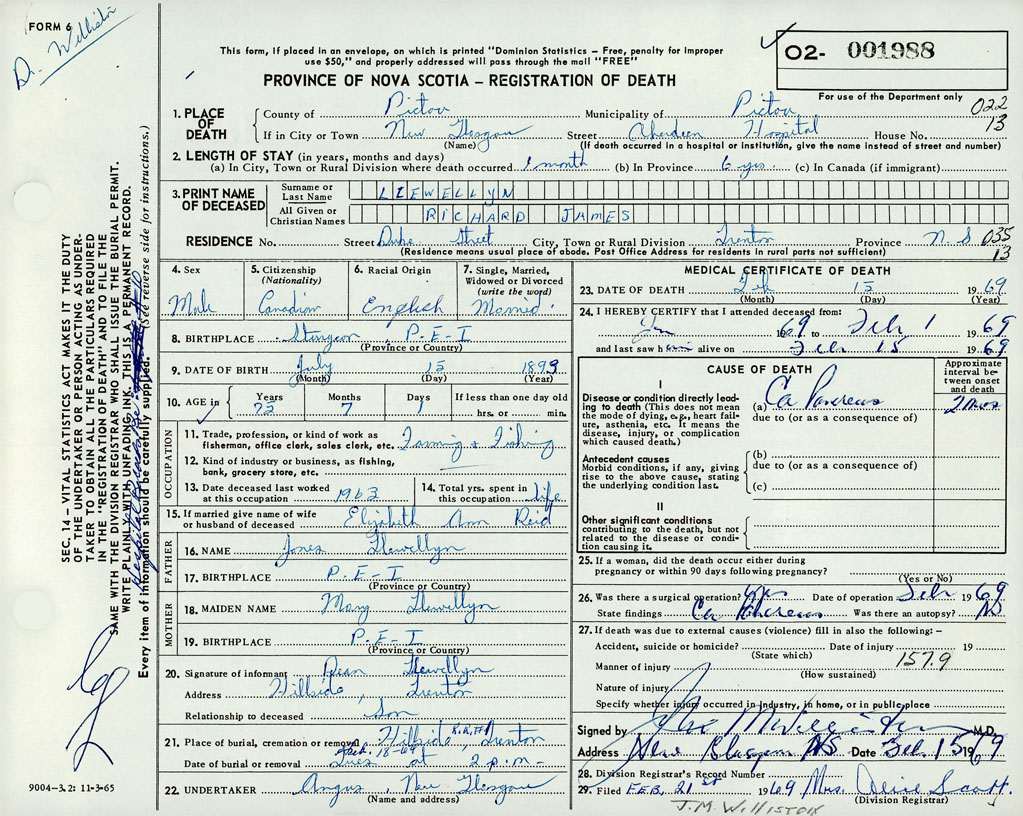 Death Registration: Year: 1969 number: 1988