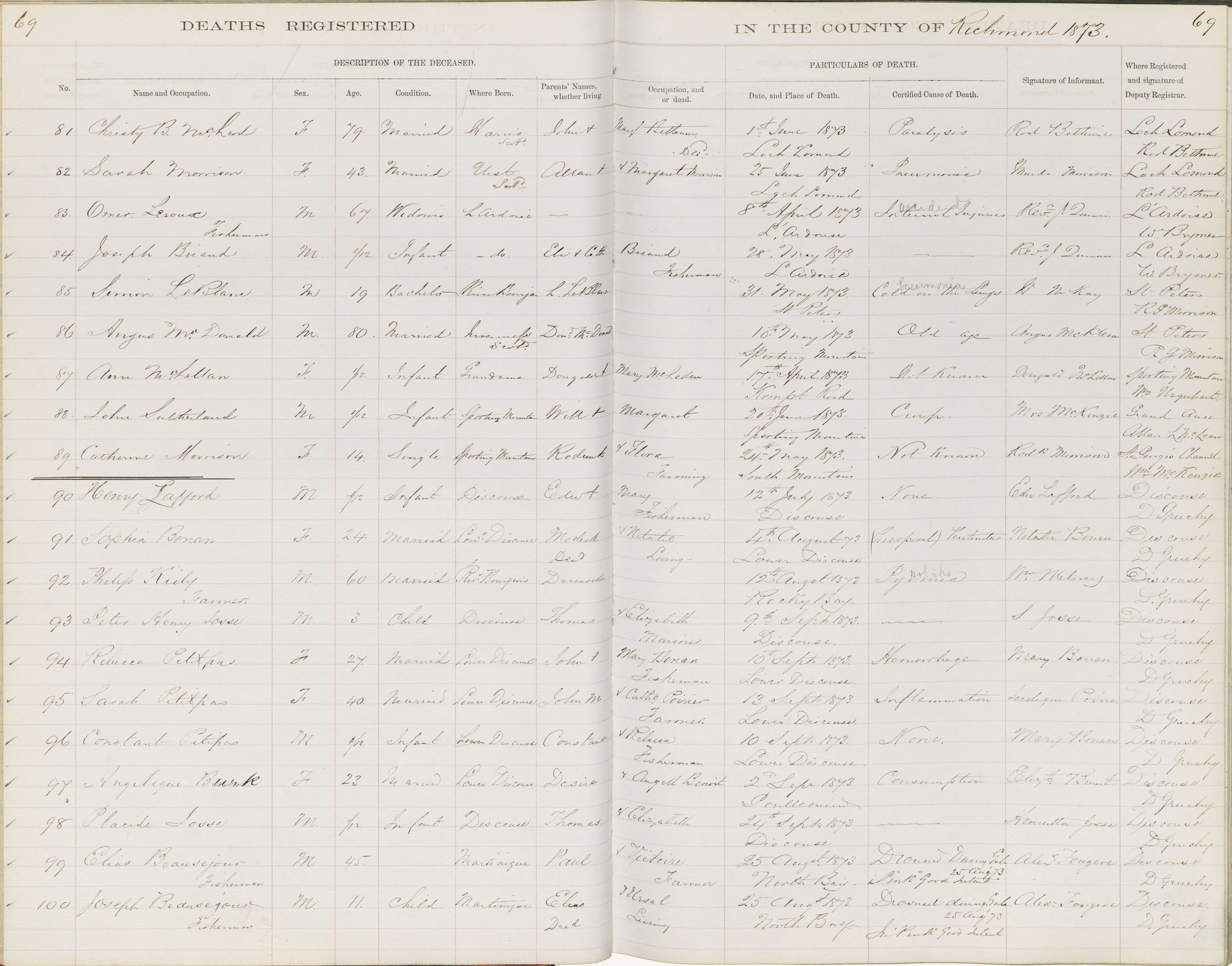 Death Registration: Year: 1873 book: 1815 page: 69 number: 81