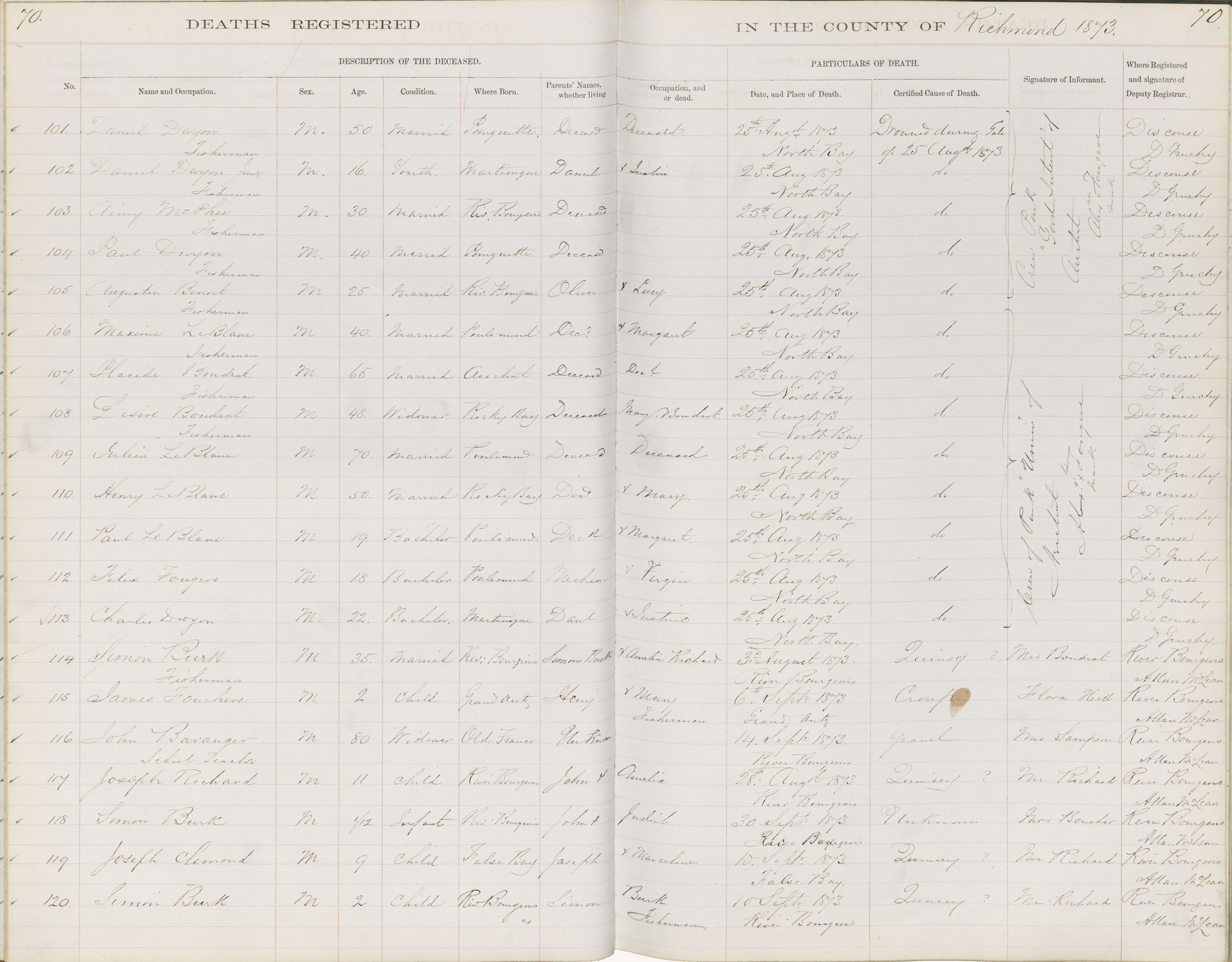 Death Registration: Year: 1873 book: 1815 page: 70 number: 101