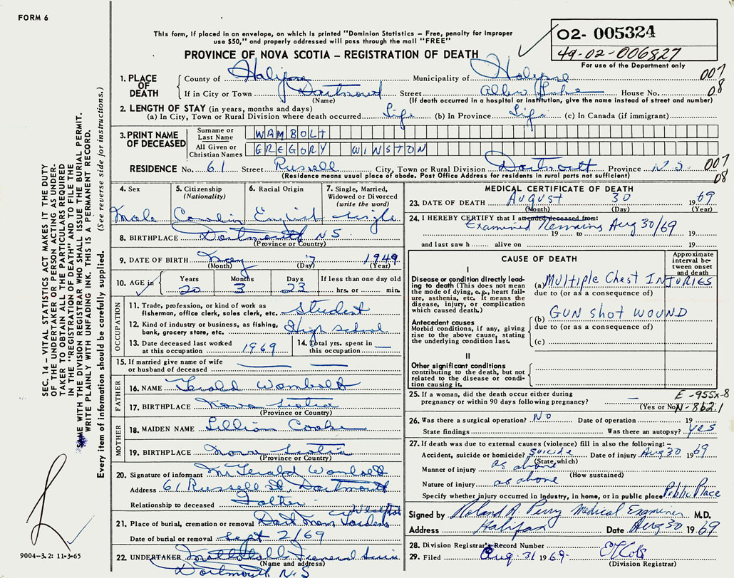 Male Death Registration: Year: 1969 number: 5324