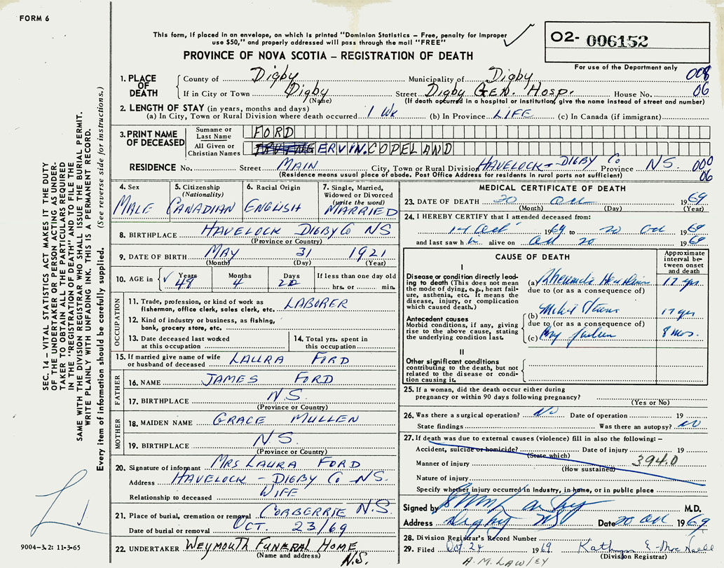 Male Death Registration: Year: 1969 number: 6152