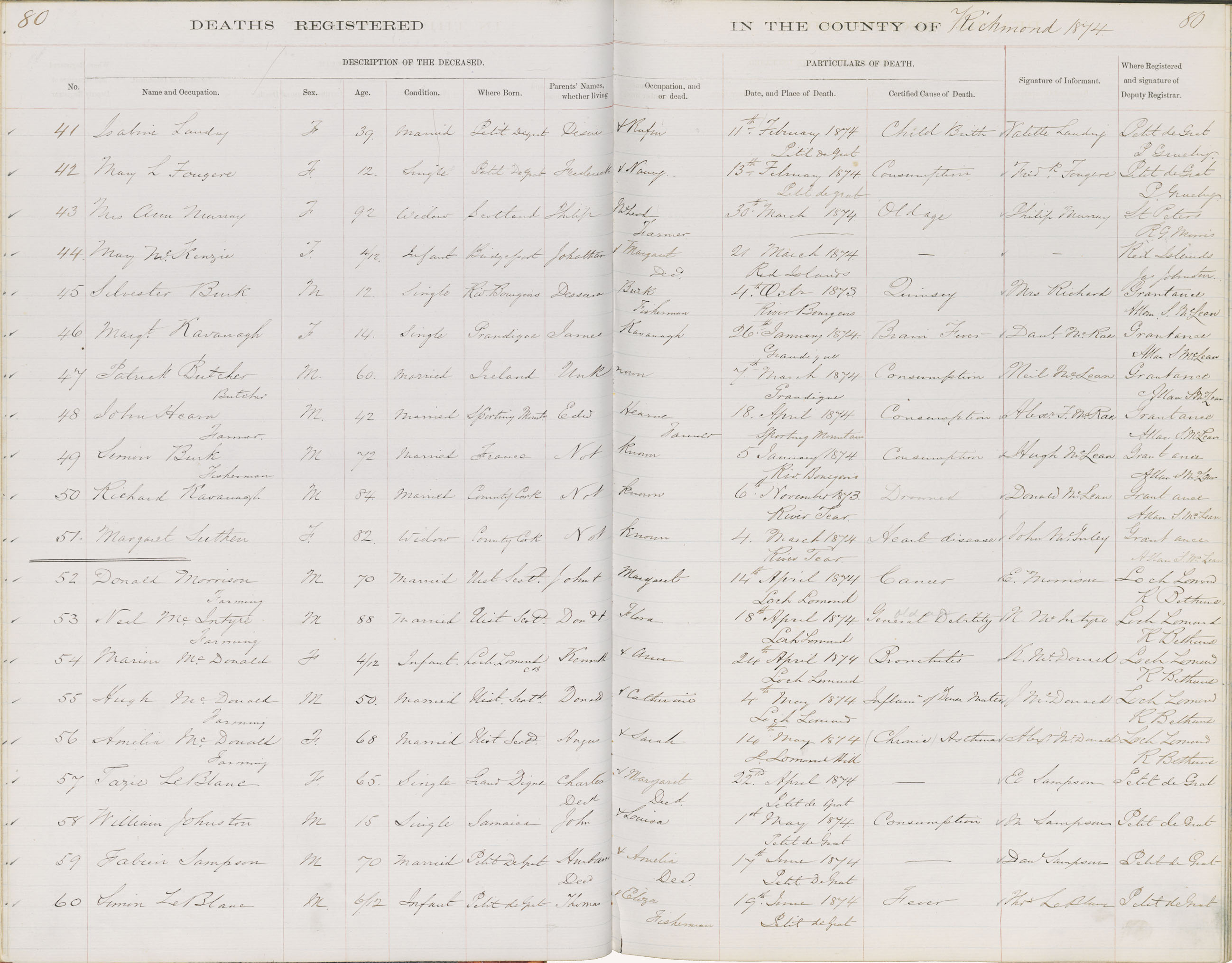 Death Registration: Year: 1874 book: 1815 page: 80 number: 60