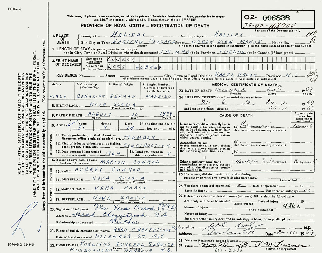 Male Death Registration: Year: 1969 number: 6838