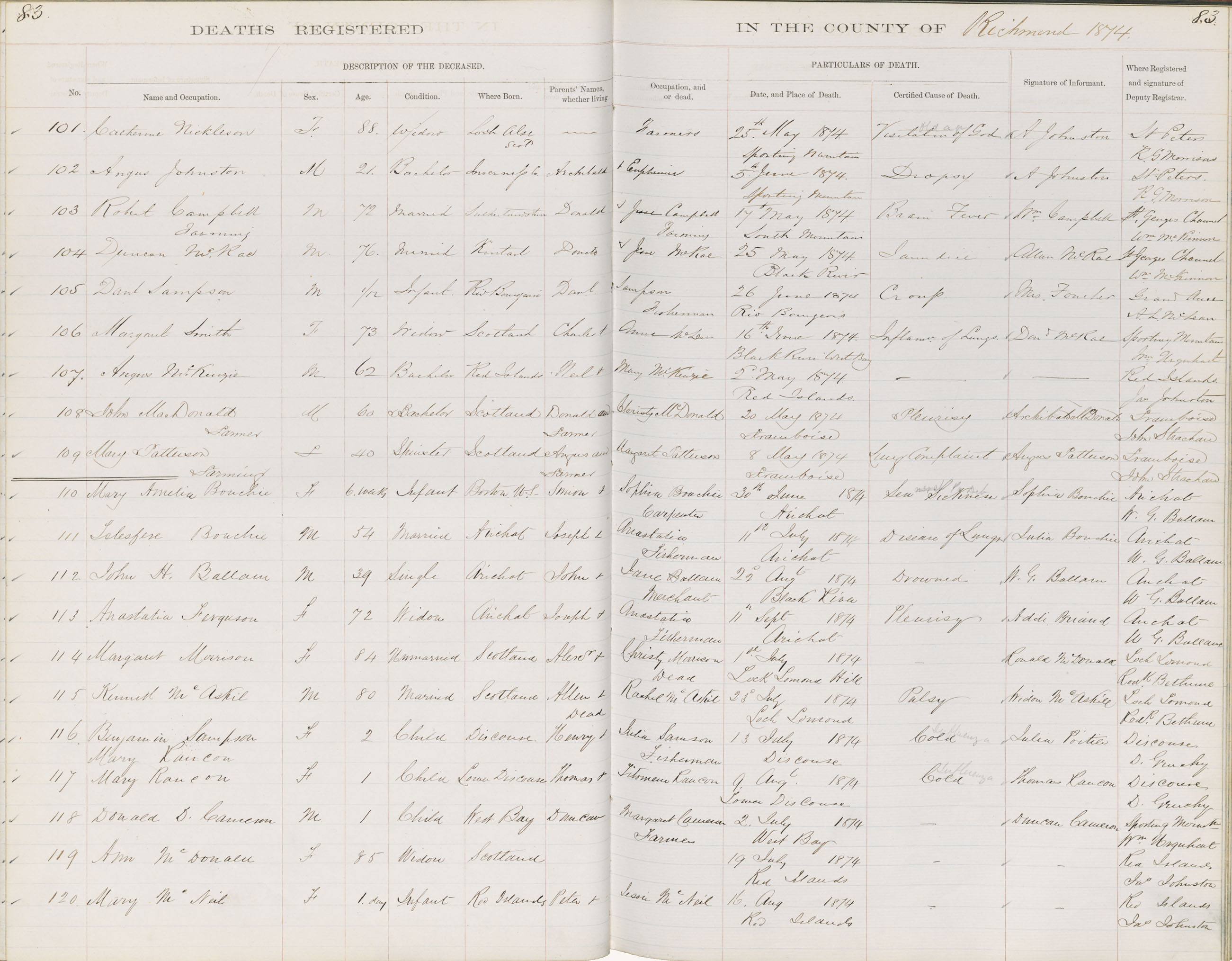 Death Registration: Year: 1874 book: 1815 page: 83 number: 108
