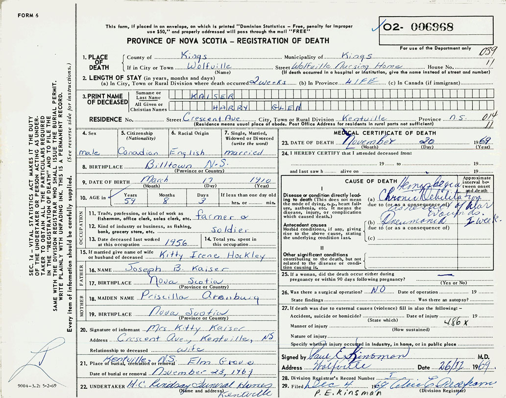 Male Death Registration: Year: 1969 number: 6968