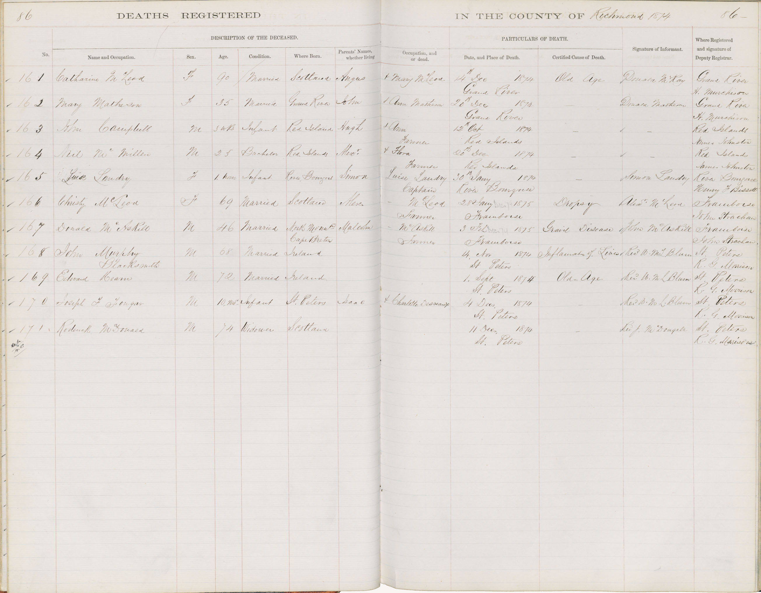 Death Registration: Year: 1874 book: 1815 page: 86 number: 161
