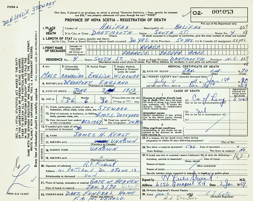 3. PRINT NAME OF DECEASED Keast, Francis Joseph Amos