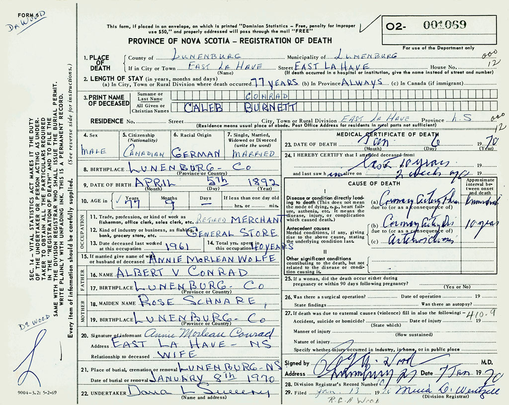 1. PLACE OF DEATH County of Lunenburg If in City or Town East LaHave
