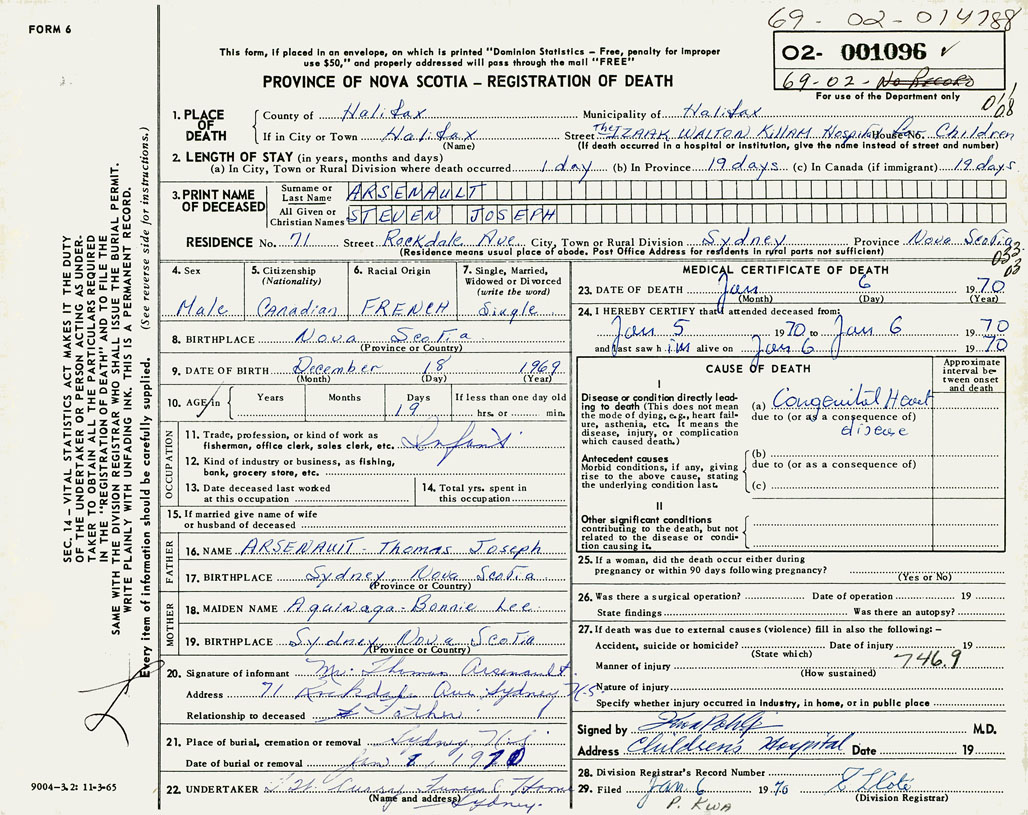 PROVINCE OF NOVA SCOTIA — REGISTRATION OF DEATH