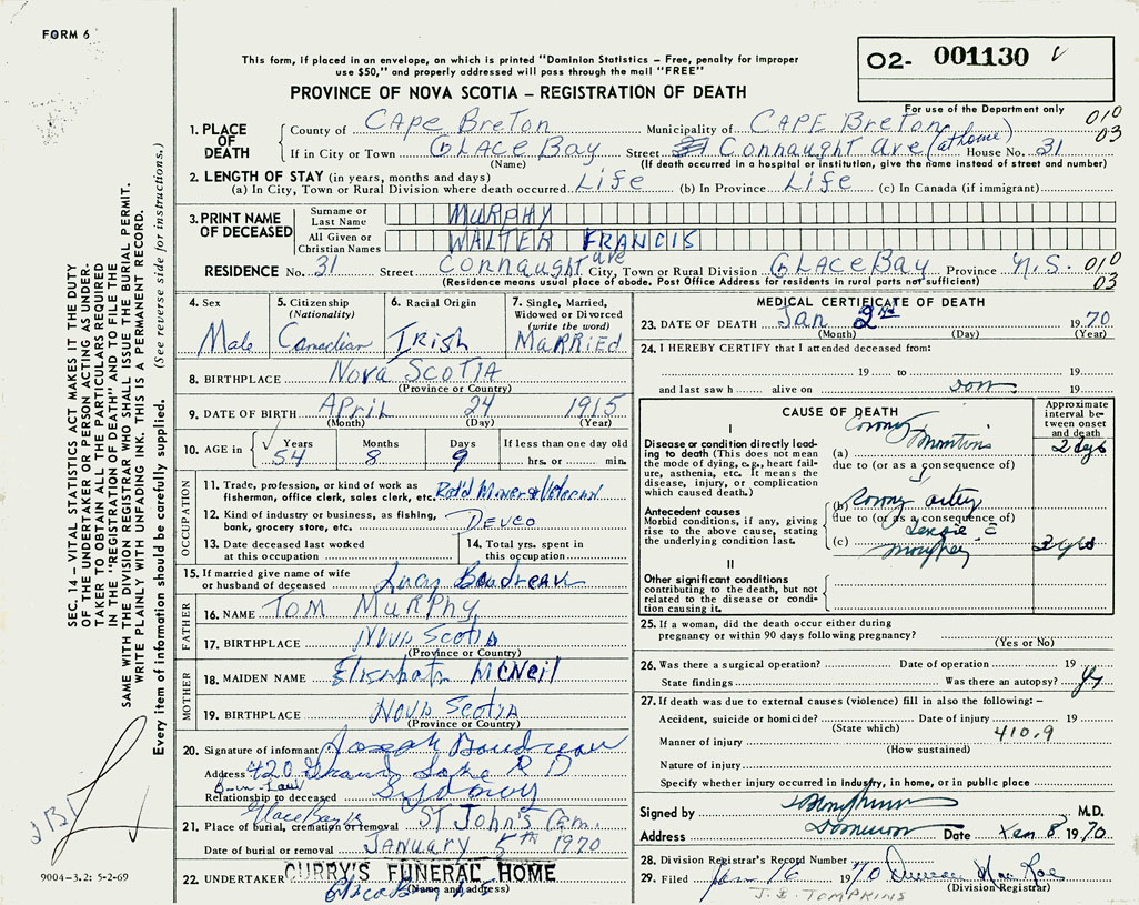 3. PRINT NAME OF DECEASED Murphy, Walter Francis