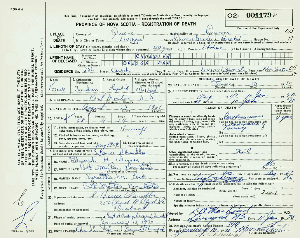 22. Undertaker Chandlers Funeral Service Ltd. Liverpool, Queens County Canada