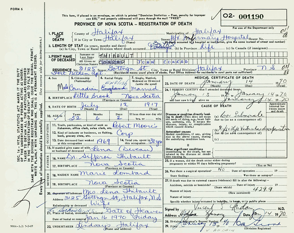 PROVINCE OF NOVA SCOTIA — REGISTRATION OF DEATH