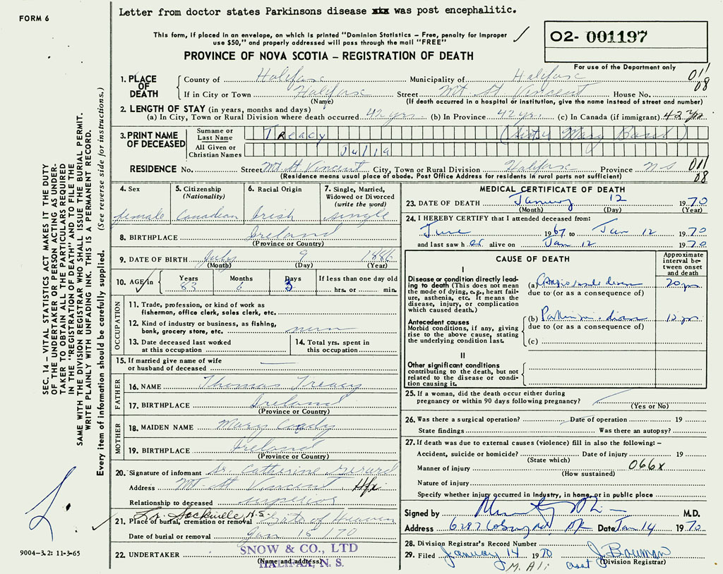 PROVINCE OF NOVA SCOTIA — REGISTRATION OF DEATH