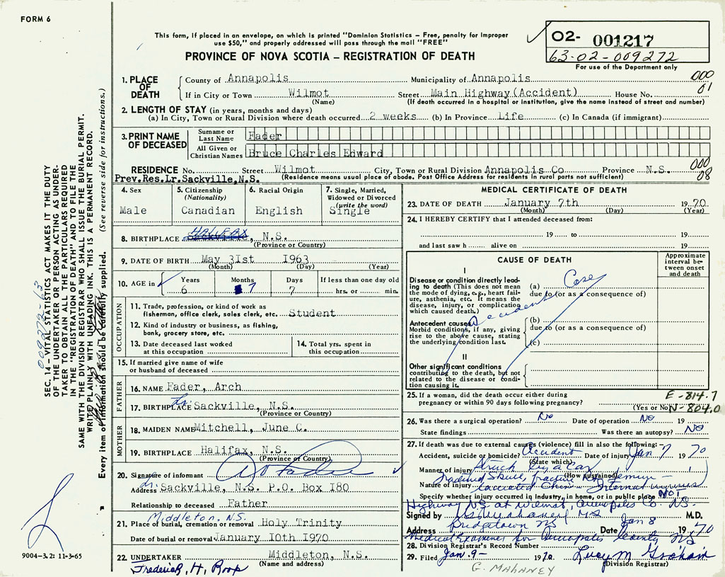 PROVINCE OF NOVA SCOTIA — REGISTRATION OF DEATH