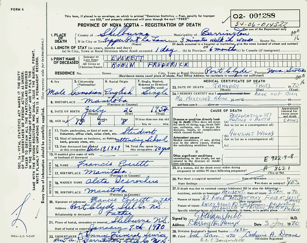 PROVINCE OF NOVA SCOTIA — REGISTRATION OF DEATH