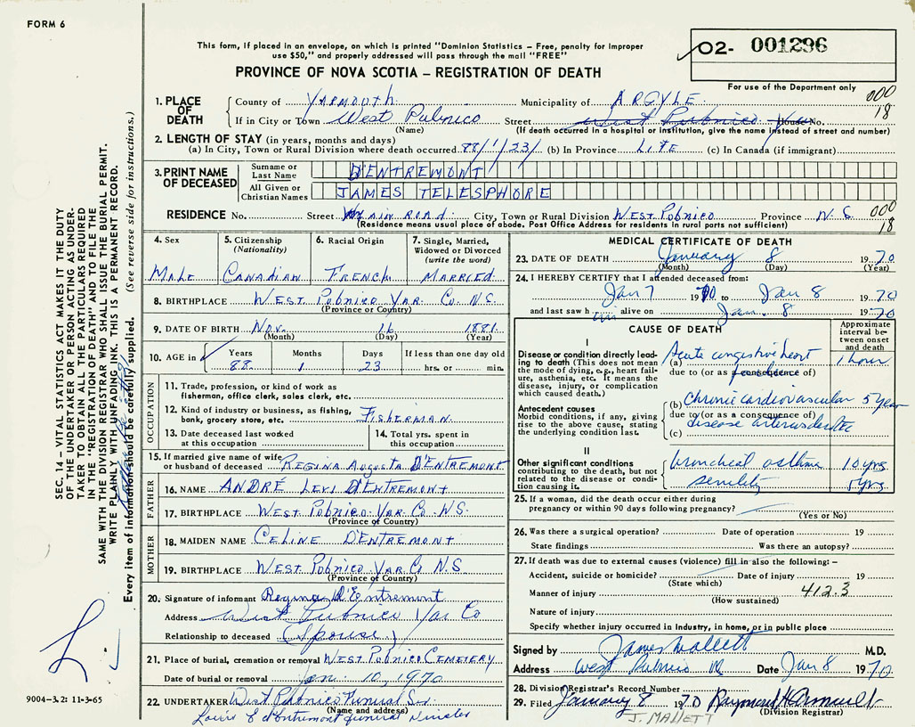 3. PRINT NAME OF DECEASED D'Entremont, James Telesphore
