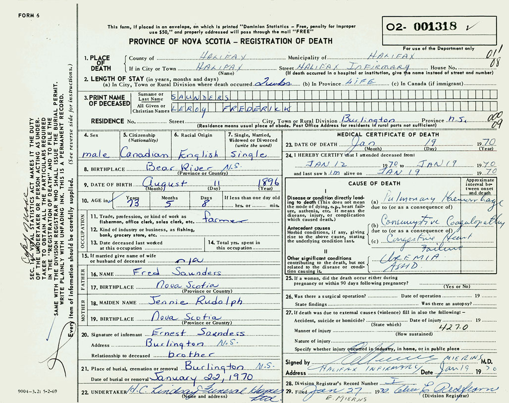 PROVINCE OF NOVA SCOTIA — REGISTRATION OF DEATH