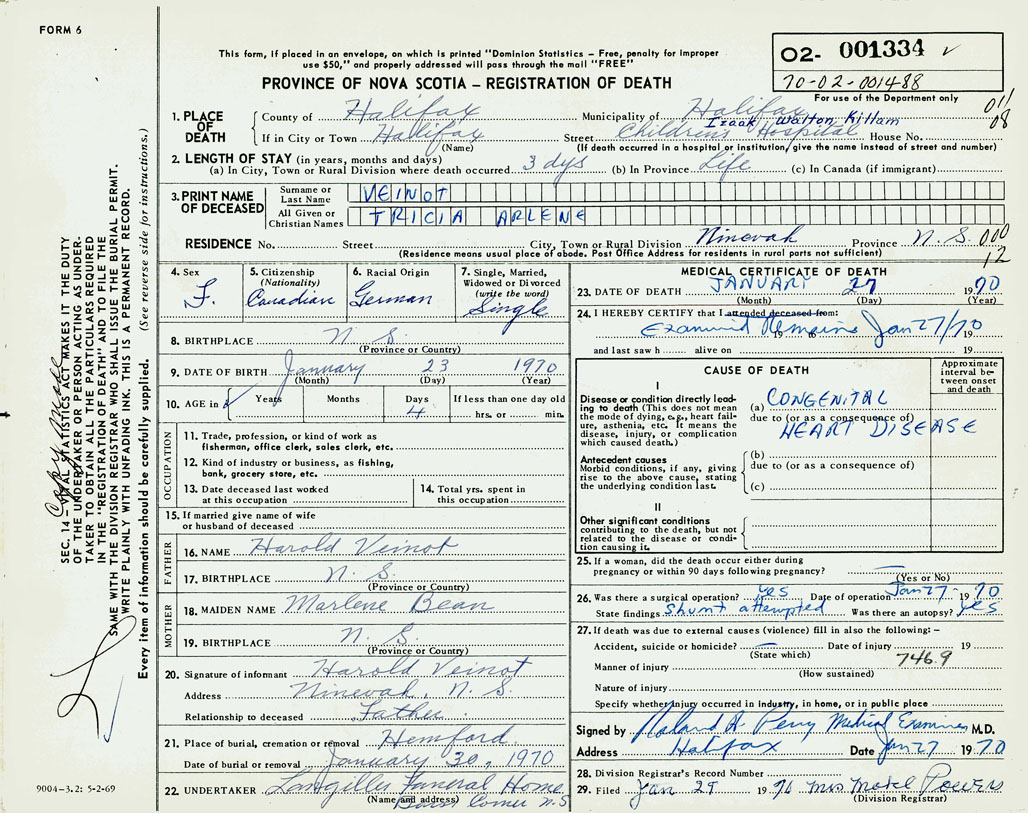 3. PRINT NAME OF DECEASED Veinot, Tricia Arlene
