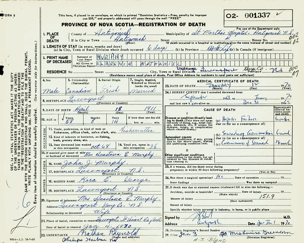 PROVINCE OF NOVA SCOTIA — REGISTRATION OF DEATH
