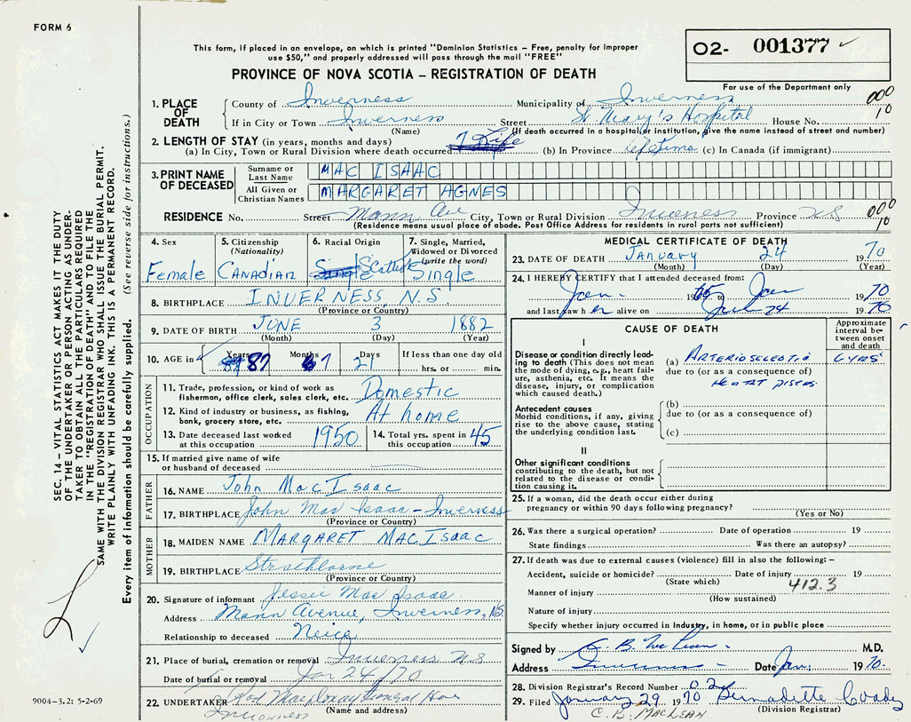 3. PRINT NAME OF DECEASED MacIsaac, Margaret Agnes