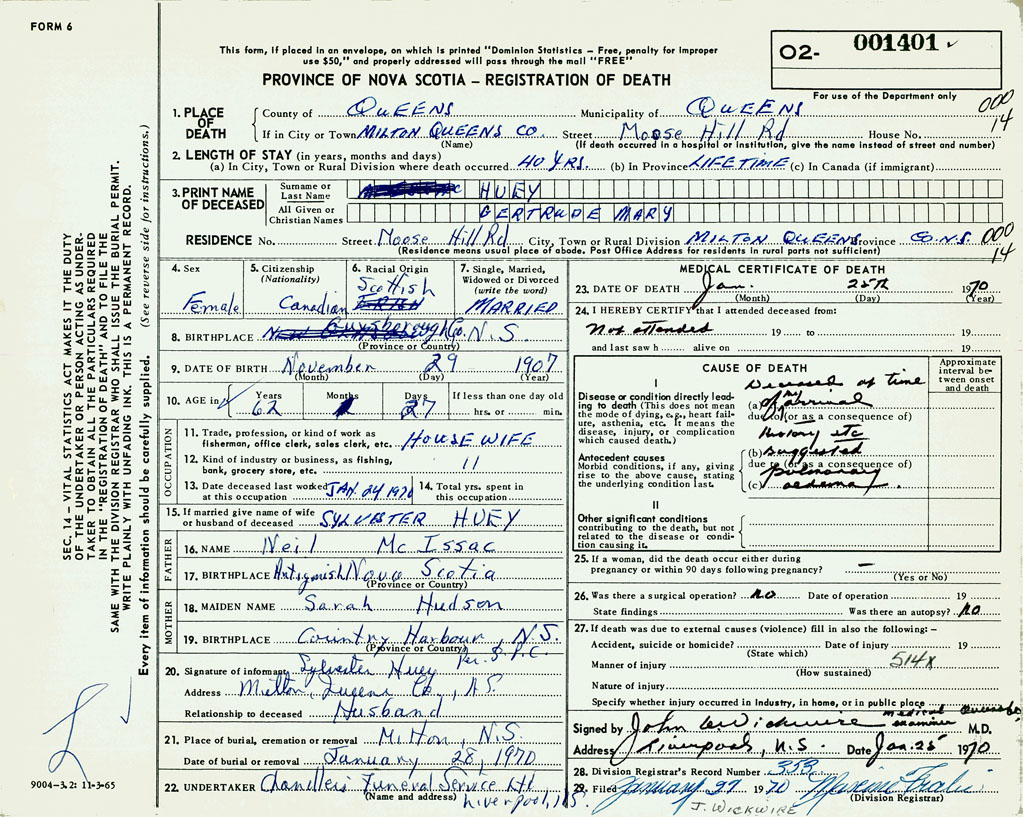 PROVINCE OF NOVA SCOTIA — REGISTRATION OF DEATH